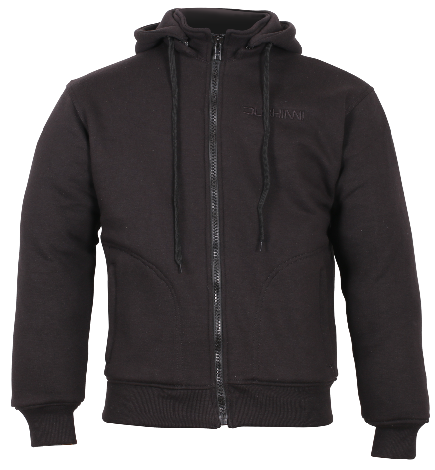 Heavy duty cotton fleece textile outer construction • Full 250gsm Aramid Fibre lining with mesh overlay • Removable CE approved shoulder, elbow and back armour • Removable hood with zipper fastening and draw string • Elasticated ribbed hem and cuff • Two external pockets with zipper closure • Two internal pockets • Connection zip with comfort stretch panel to suit trousers