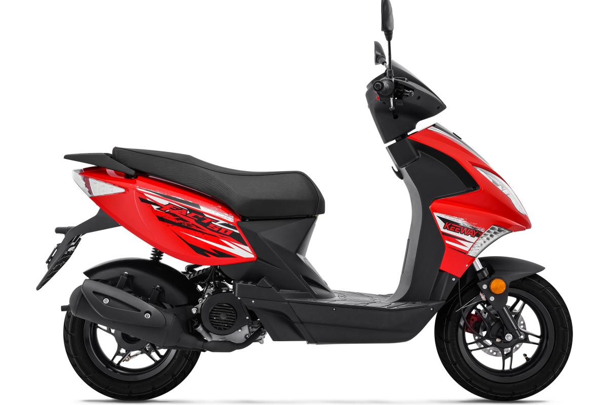Taking the concept of a light, edgy scooter with good handling up a level, the Fact 50 aims to be the daily driver with future-thinking styling. A modern 4-stroke engine with an automatic CVT gives easy power on tap but still keeps fuel efficiency in mind for no-frills everyday riding. Get ready to go at anytime with electric start, and be ready to stop with its powerful front disc brake. Standing out from the pack are multi-sided LED headlights and taillights for a wide visual look. Thanks to the long and wide seat, be ready to enjoy the ride - even when shared with someone - with the Keeway Fact 50.