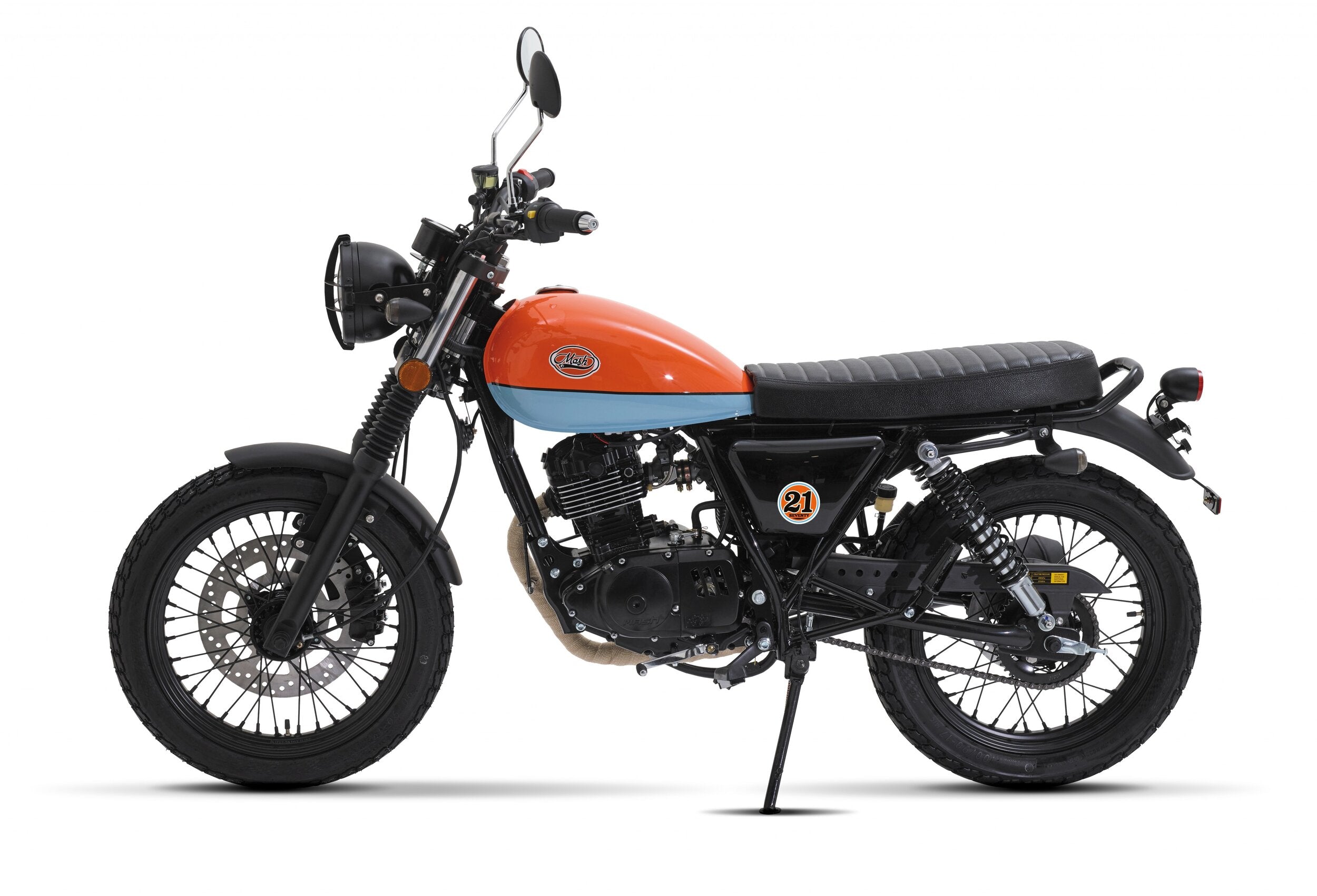 Beginning with the model that started it all in 2011! The Seventy, back in the days, was one of the first 125cc retro models, and now it has a successor. The new Seventy is just as revolutionary as its namesake. Anyone who spots this motorcycle for the first time will think that the model is made by a customizer, but appearances can be deceptive. All of these custom features are standard at the Seventy. We’re talking about the headlamp grill, exhaust tape, saddle and matt finish that are all included in the standard price. The Seventy is ideal for new motorcyclists that are in possession of motorcycle license A1, but also for the urban commuter who goes through the asphalt jungle on a daily basis to get to work. (picture is a Euro4 model and is slightly different, handlebar, headlight)