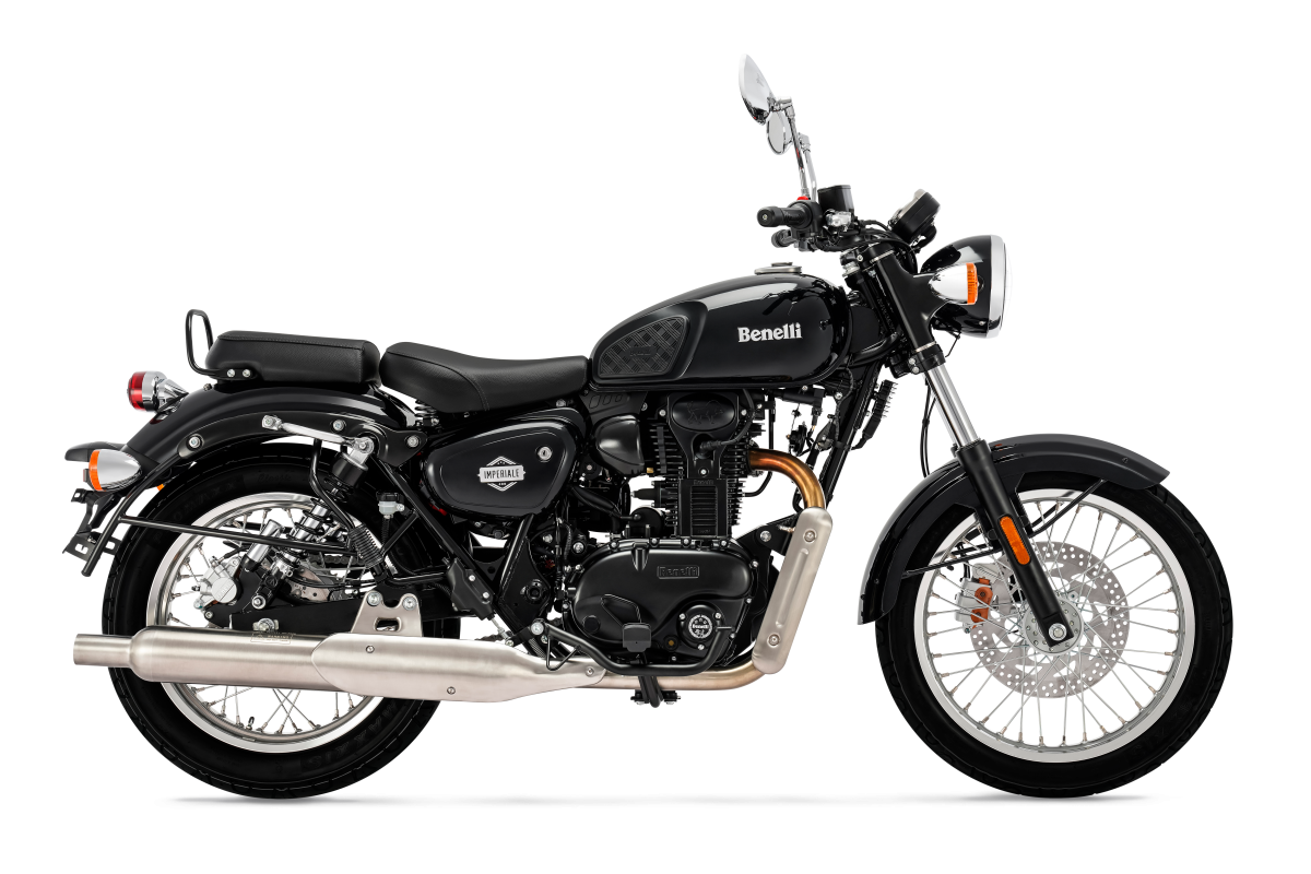 Classic bike for free spirits that strongly recalls the heritage of the Company of the Leoncino. This is the Imperiale 400, the Benelli motorcycle with a classic taste and a reinterpretation of a historical model of the Benelli-MotoBi range produced in the 1950s. An authentic bike with a pure spirit that today finds its essence in an elegant, modern, retro motorcycle. The beating heart of the Imperiale 400 is the new single-cylinder, four-stroke, air- cooled engine with a single overhead camshaft timing system and electronic fuel injection offering maximum fuel economy in any riding conditions. Its maximum power is 21 hp (15.5 kW) at 5500 rpm, with torque of 29 Nm (2.95 kgm) at 4500 rpm. Extremely easy to ride and handle, the Imperiale 400 has a compact and durable double cradle frame made of steel tubes and plates. The front suspension features a telescopic fork with legs having a 41 mm diameter and 121 mm travel, while the rear has a swinging arm with double shock absorber and travel of 55 mm. The design of the exhaust and the chrome inserts accentuate the vintage style of this new Benelli motorcycle, reinforced by the round front headlight – typically retro – and the teardrop tank, which bring out the motorcycle's true essence. The effective and balanced braking system of the Imperiale 400 features a 300 mm diameter disc on the front with two-piston floating calliper and a 240 mm disc with single-piston floating calliper at the rear, thus ensuring full control of the bike. The aluminium alloy rims have different diameters: 19" on the front end, 18" on the back, respectively mounting 100/90 and 130/80 tyres.