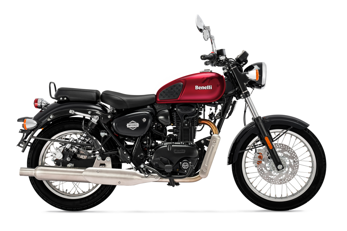 Classic bike for free spirits that strongly recalls the heritage of the Company of the Leoncino. This is the Imperiale 400, the Benelli motorcycle with a classic taste and a reinterpretation of a historical model of the Benelli-MotoBi range produced in the 1950s. An authentic bike with a pure spirit that today finds its essence in an elegant, modern, retro motorcycle. The beating heart of the Imperiale 400 is the new single-cylinder, four-stroke, air- cooled engine with a single overhead camshaft timing system and electronic fuel injection offering maximum fuel economy in any riding conditions. Its maximum power is 21 hp (15.5 kW) at 5500 rpm, with torque of 29 Nm (2.95 kgm) at 4500 rpm. Extremely easy to ride and handle, the Imperiale 400 has a compact and durable double cradle frame made of steel tubes and plates. The front suspension features a telescopic fork with legs having a 41 mm diameter and 121 mm travel, while the rear has a swinging arm with double shock absorber and travel of 55 mm. The design of the exhaust and the chrome inserts accentuate the vintage style of this new Benelli motorcycle, reinforced by the round front headlight – typically retro – and the teardrop tank, which bring out the motorcycle's true essence. The effective and balanced braking system of the Imperiale 400 features a 300 mm diameter disc on the front with two-piston floating calliper and a 240 mm disc with single-piston floating calliper at the rear, thus ensuring full control of the bike. The aluminium alloy rims have different diameters: 19" on the front end, 18" on the back, respectively mounting 100/90 and 130/80 tyres.