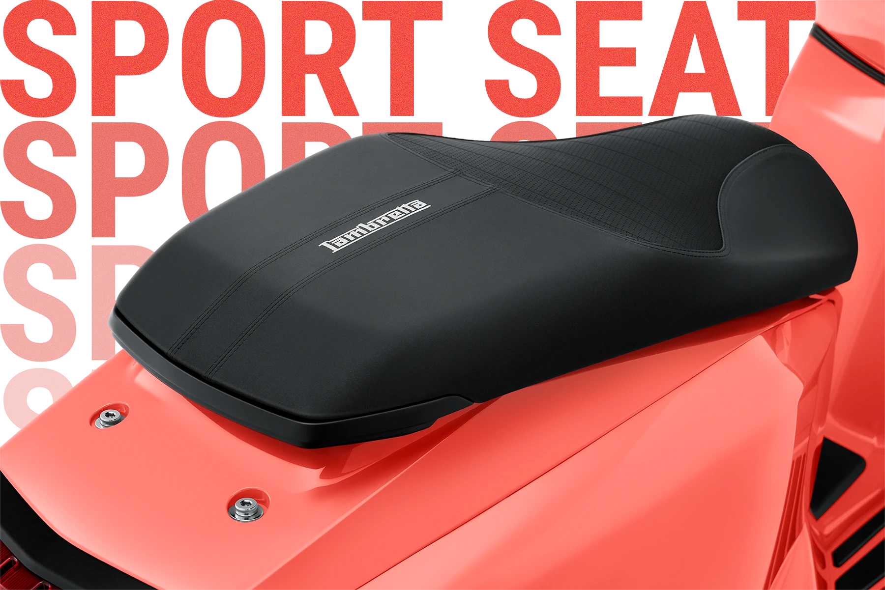 The sport-style seat features elegant Lambretta embroidery and conceals ample under-seat storage; room for an open-face helmet or your daily essentials. Discreet luggage hooks and a double-lock fuel cap add convenience for everyday use.
