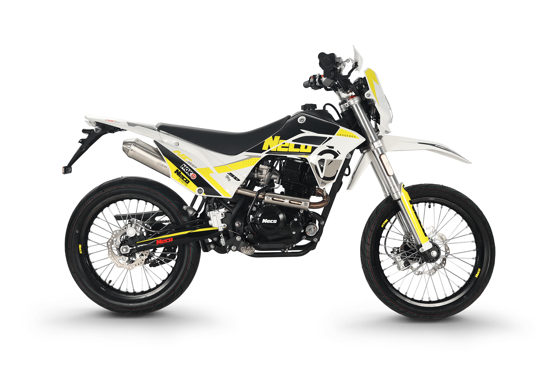 Neco Moto meets the expectations of enthusiastic young riders with a 50cc featuring an exceptional engine. With race‑inspired styling, the NC50 brings big‑bike features to the 50cc class: an efficient chassis, hydraulic suspension and powerful disc brakes. Riding on aluminium rims with road tyres for a precise road feel, the NC50 also packs modern tech such as LED lighting and a digital instrument panel. Its Euro 5 4‑stroke engine uses a DOHC cylinder head for quick revs and strong acceleration, with reliable starts in all conditions thanks to electronic fuel injection.