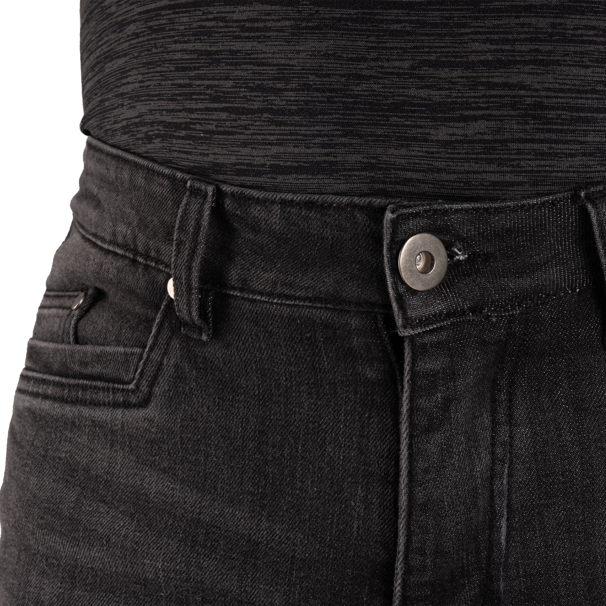• Stretch denim outer with zoned aramid secondary protection layer