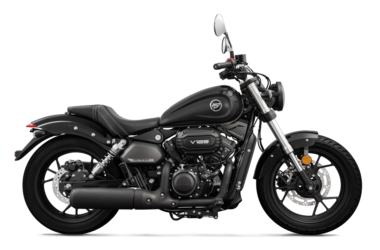 Keeway RK V125 C is a modern take on the classic V-twin cruiser, combining timeless design with up-to-date components for the contemporary rider. Featuring a new 125cc V-twin engine with 6 valves, liquid cooling, and electronic fuel injection, the RK V125 C delivers peak figures of 10.2kW of power and 14.4N·m of torque, more than enough to push the 164kg (dry) motorcycle. Unlike other motorcycles of its size, the RK V125 C comes equipped with inverted front forks and front and rear disc brakes, ensuring optimal performance and handling. Thick 120/80-17 and 140/70-17 tires adorn the front and back, respectively, adding to the low and wide cruiser look. The 2-into-1 exhaust provides a clean view of the polished engine case while emitting the distinctive rumble of a V-twin. The chain final drive ensures optimal comfort and minimal maintenance. The electronics of the RK V125 C are also thoroughly modernized, featuring a thin, round headlight that projects the Keeway logo on the DRL, producing a 3D effect when combined with the LED low- and high-beam lamps. The instrument cluster is circular and features a white-on-black digital display highlighted by a radial tachometer around the speedometer. The tank of the RK V125 C is wide in proportions and comes in solid red or black finishes. Holding a massive 19 liters of fuel, it gives the RK V125 C class-leading range with just one fill-up, perfect for those never-ending road trips. The low 690mm seat height ensures comfort for riders of all sizes. Overall, the Keeway RK V125 C is a stylish and reliable motorcycle that is perfect for those looking for a modern take on the classic cruiser. With its sleek design, up-to-date components, and class-leading range, the RK V125 C is the perfect bike for those looking to hit the open road.