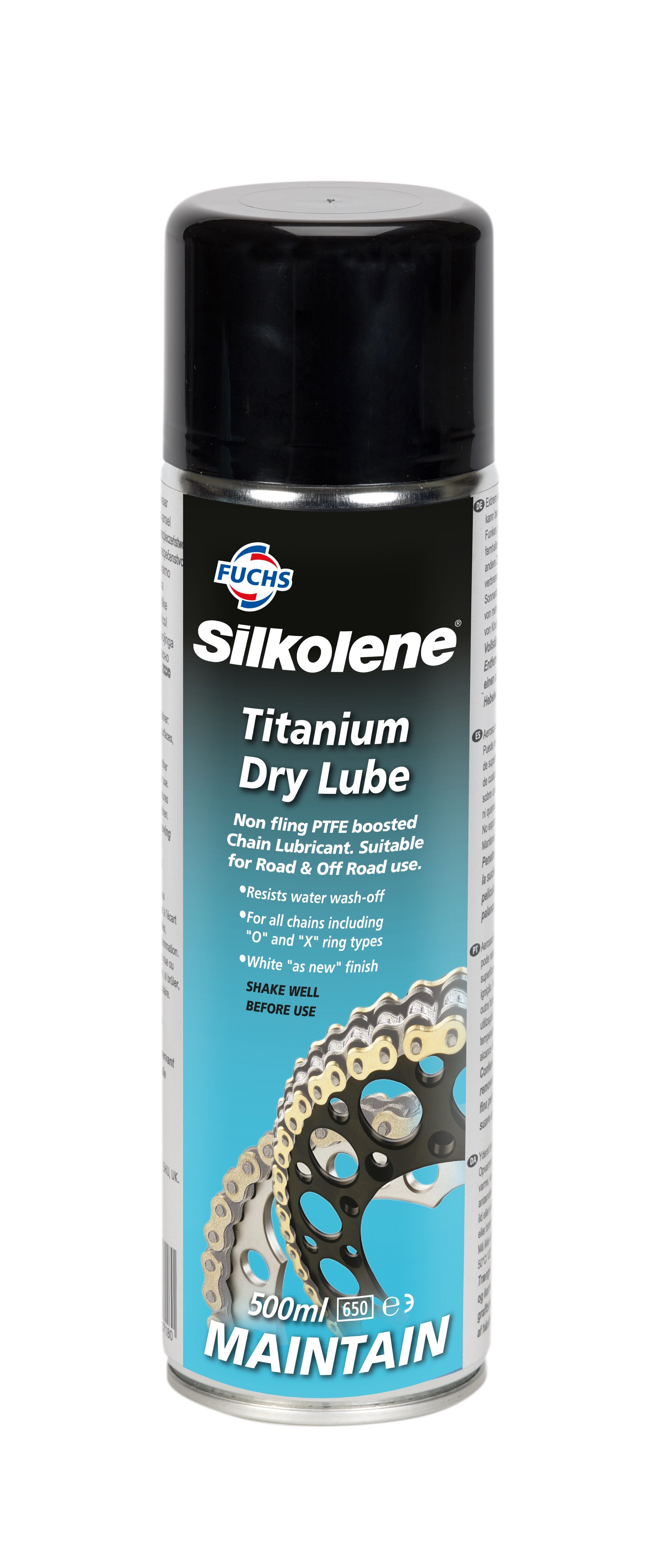 Non fling PTFE boosted Chain Lubricant. Suitable for Road & Off Road use. This hyper strong PTFE boosted formula resists high speed fling-off while providing exceptional anti-wear and anti-corrosion performance even in severe conditions. Silkolene Titanium Dri-Gel protects your chain, leaving it with a white “as new” finish. For all chains including “O” and “X” ring types. FUCHS strongly recommend the use of FUCHS Silkolene Brake & Chain Cleaner prior to use.