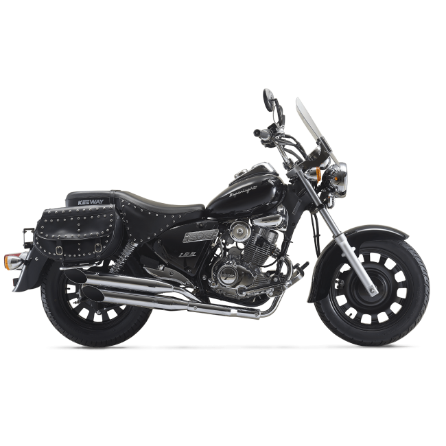 The 125cc cruiser that stands out from the crowd, complete with screen and studded saddlebags the Keeway superlight 125 SE is the top of the tree when it comes to looks, comfort and reliability. With the Keeway reputation for reliability and the comfort of a bigger capacity bike the 125SE is at home either cruising around the city or taking a run on the open road.
