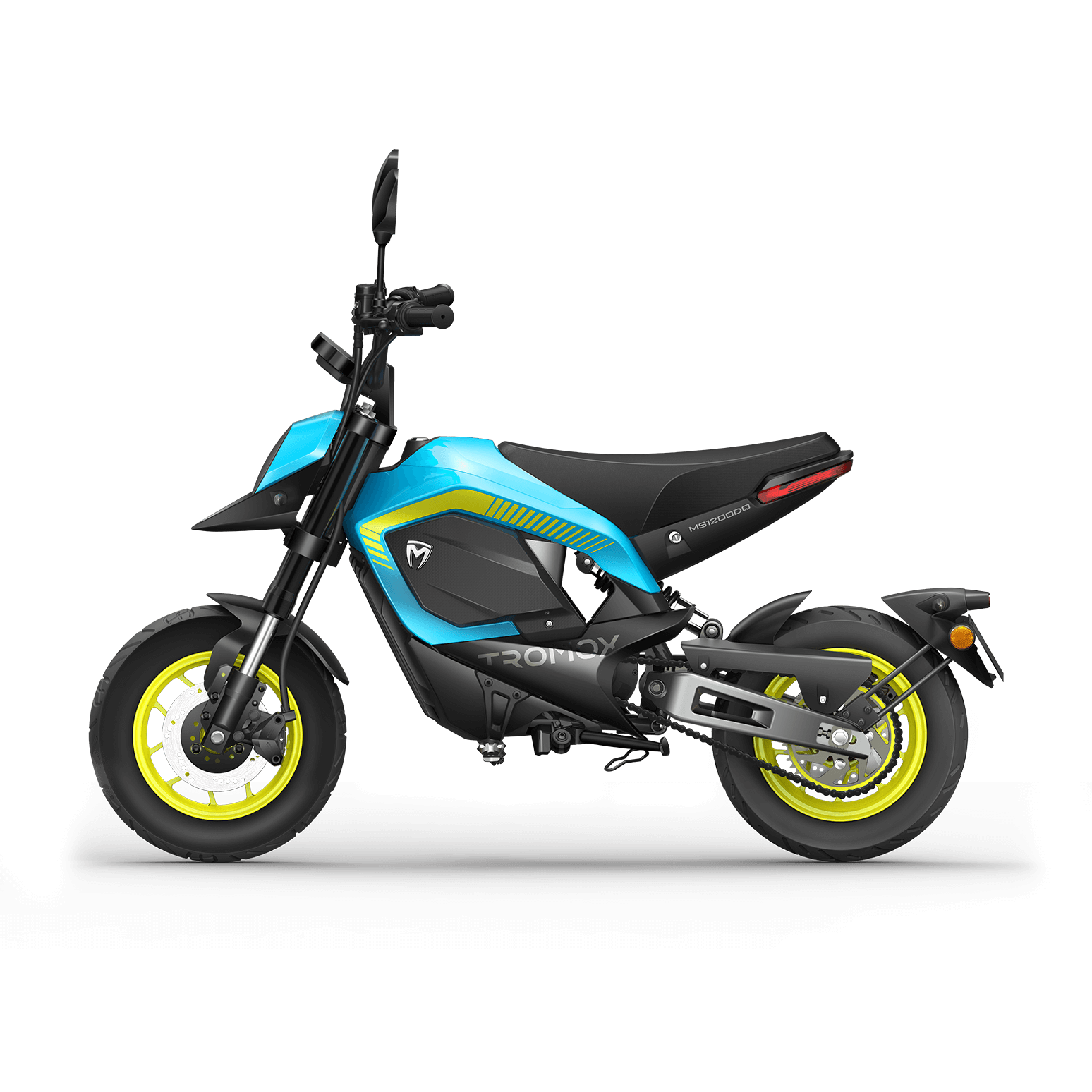 The MINO is an innovative electric bike by Tromox. The company is dedicated to high quality intelligent electric motorcycles. The MINO is designed in a partnership with an Italian design firm and is designed to be easy to personalize. The bike has a swap-able 38 Ah lithium battery made by Panasonic that provides a driving range of 73 miles. The battery is of high quality and is of the same type as the batteries in the Tesla Model S. The bike has a powerful 2,500 watt electric motor with 110 Nm torque for a top speed of 35 mph while restricted to 50cc mode but can do over 45mph once fully derestricted. The bike has a premium quality carbon steel frame, aluminium parts, high efficiency 180mm disc brakes and is equipped with over 20 sensors that monitor the health of the vehicle. The moped is lightweight and easy to handle.