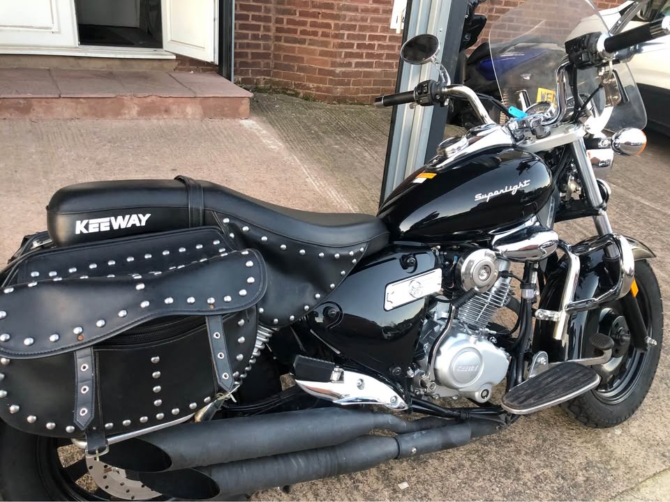 Great example of the Keeway Superlight SE 125, a stylish custom cruiser that’s ideal for learners and riders aged 17 and over. Smooth four-stroke single, low running costs, and loaded with extras.