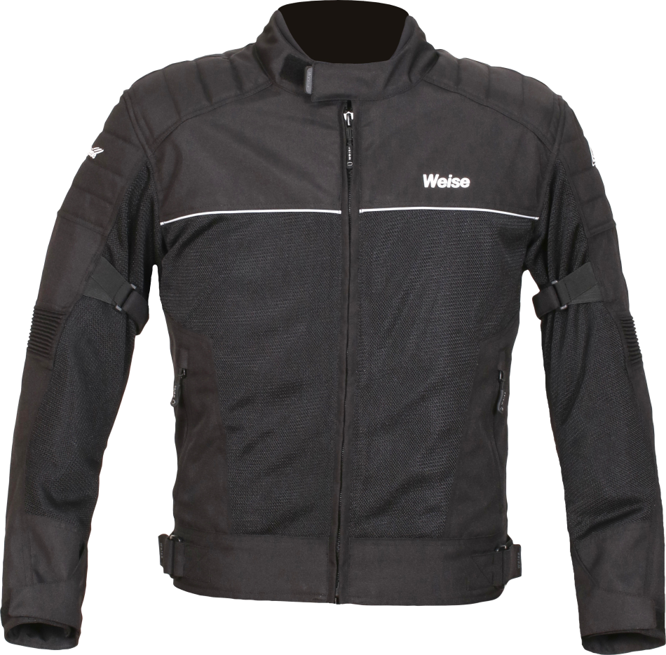 600 Denier polyester outer construction • Large front, rear and arm mesh panels • Removable CE approved shoulder, elbow and back armour • Quilted styling to shoulders and upper arm • Neoprene® trimmed adjustable collar with closure • Upper rear torso and elbow stretch panels for added flexibility • Reflective piping for added night-time visibility • Adjustable waist with belt system • Sleeve adjusters to help reduce billowing • Adjustable cuff with closure • Two external pockets with zipped closure • Two internal pockets • Internal elasticated belt clasp • Connection zip to suit jeans with comfort stretch panel