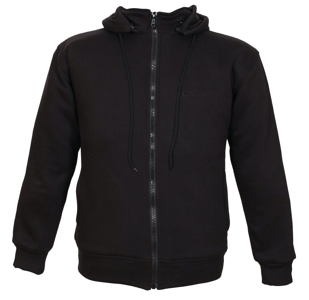 Now for something different. A comfortable, heavy duty, CE armoured cotton fleece with a removable hood, taking you from bike to the street with style.